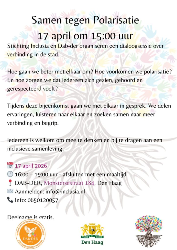 Lees meerWijkcentrum Dab Der en Stichting Inclusia organiseren een dialoogsessie over verbinding in de stad. Iedereen...